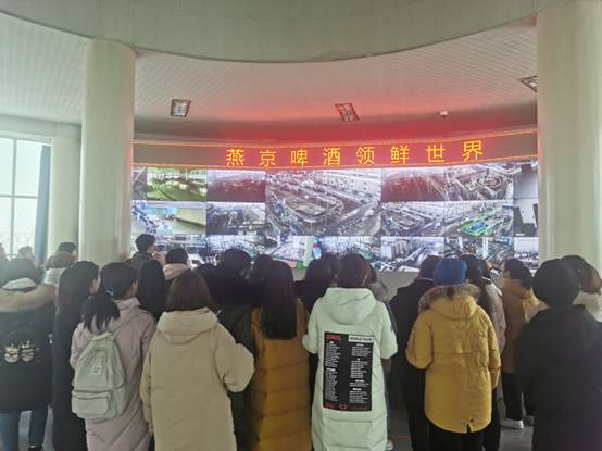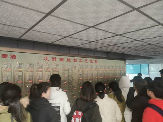 同学们到达燕京啤酒厂后,首先于大厅集合并由参观讲解老师统一带领前往参观。参观伊始,讲解老师首先为同学们介绍了燕京啤酒厂的工厂格局及相关产品,随后同学们来到了啤酒制造的厂房车间,啤酒的生产工艺流程包括五个过程:糖化、糊化、发酵、过滤和灌装,同学们亲眼见到了各个过程的生产方式。在灌装车间,老师着重为同学们介绍了检测灌装是否合格的机器,其智能化程度让同学们感叹。参观结束后,大家纷纷发表了参观感想,在感叹燕京啤酒厂机械化生产的高效率的同时表示,通过实践学习的体验让自己对理论知识有了更全面深刻的认识。