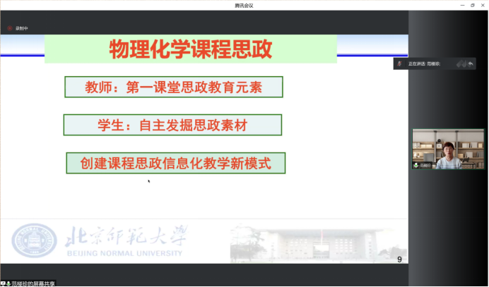 为进一步推进学院课程思政建设向纵深发展,帮助学院教师正确理解课程思政的内涵和意义、准确把握课程思政的实施路径、有效融入课程思政的教学要素、切实提高课堂教学的育人水平,2022年5月27日,生命与环境科学学院党委线上召开“课程思政建设”经验交流会(第四期)。交流会由学院党委书记张严教授主持,北京师范大学化学学院院长范楼珍教授主讲。