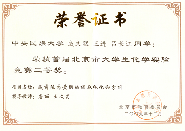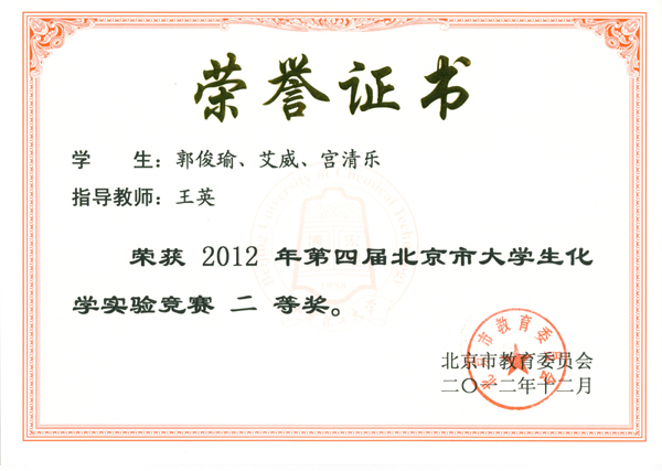 第13届北京市大学生化学实验竞赛获奖名单